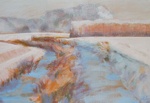 2009studie van een winterlandschap, vlot geschilderd, realiteit niet geschilderd maar wel benaderd, winterlandschap in warme kleuren